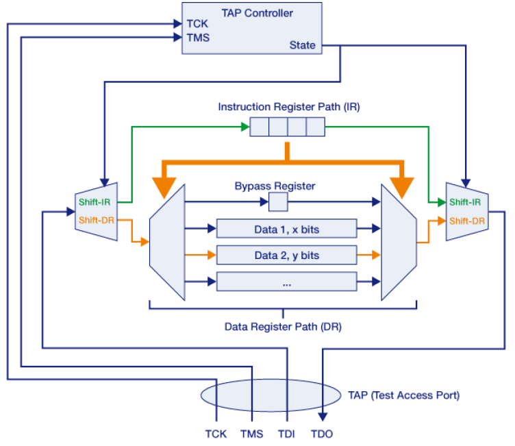 | TMS | Test Mode Select | controls the TAP controller state transitions |