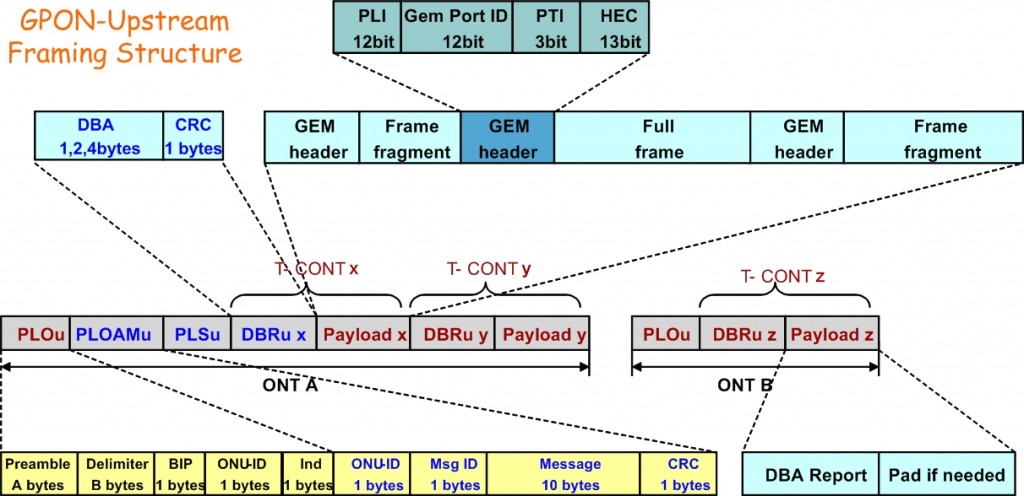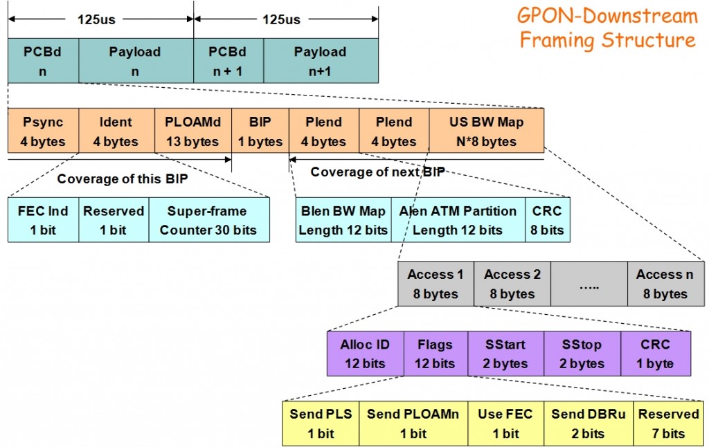 Each access 8Bytes defines a time message.More detail description is sharing in our blog “Gpon-Epon’s key technologies:DBA & T-CONT ”. (N*8Bytes)