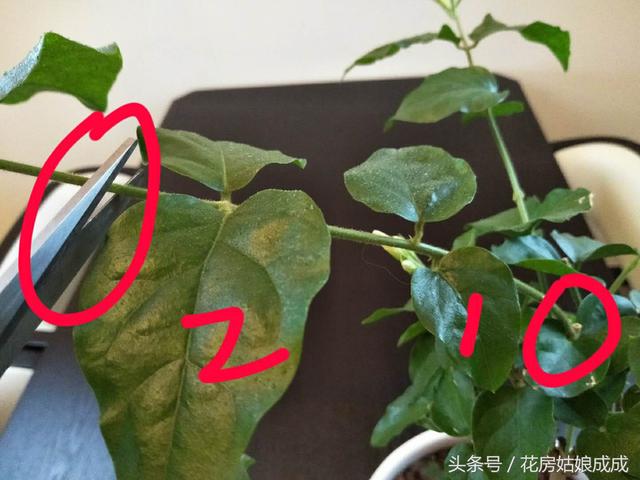 花谢后,咱们只给它保留两个节点(一对叶子,是一个节点),也就是说从枝条的根部向上数两个节点,把第二个节点以上的枝条全部剪掉(如果枝条徒长的厉害,保留一个节点也行)