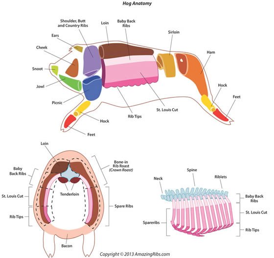 Spareribs/side rib/St. Louis Spares: Meatier than the Back Rib, Spareribs – also known as side ribs - are thick, juicy, and come from the belly section of the pig