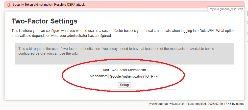 Dokuwiki 2FA (wo-Factor Authentication) Login Guide